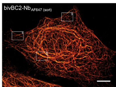 A peptide tag-specific nanobody enables high-quality labeling for dSTORM imaging.