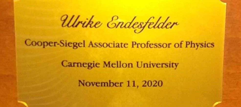 Ulrike has received the Cooper-Siegel Career Development Professorship. This professorship, which alternates between Carnegie Mellon University's Department of Physics and School of Computer Science, supports an early career faculty member. We were awarded for our research groups' work on imaging tiny cellular structures by Single Molecule Localization Microscopy. This allows us to localize single molecules in living cells, in contrast to traditional biochemistry techniques that required purifying cellular components to study them in detail. Thus, using single-molecule biophysics, we can understand the physics behind the complex biological processes taking place in cells.